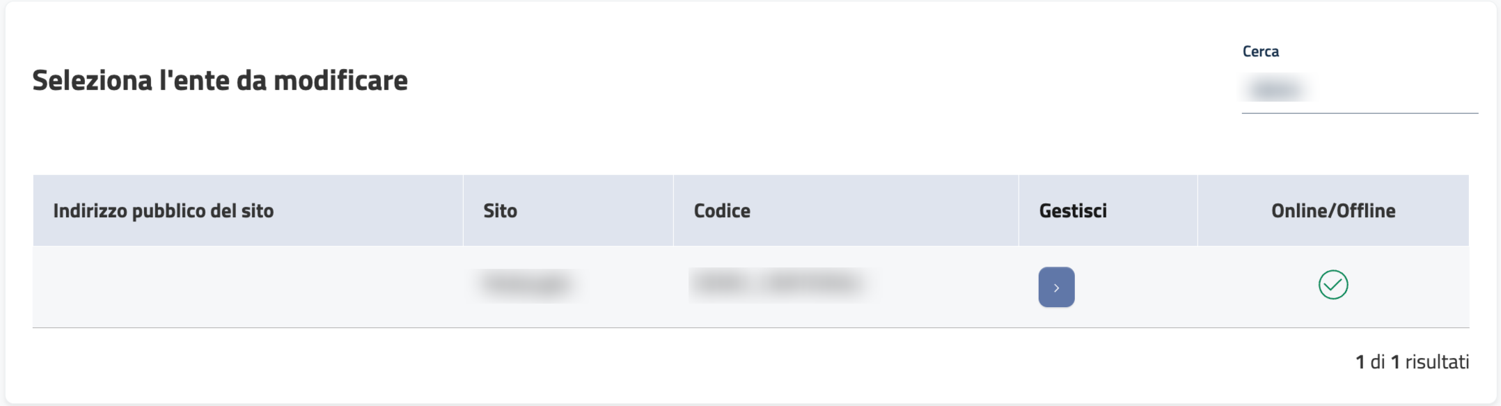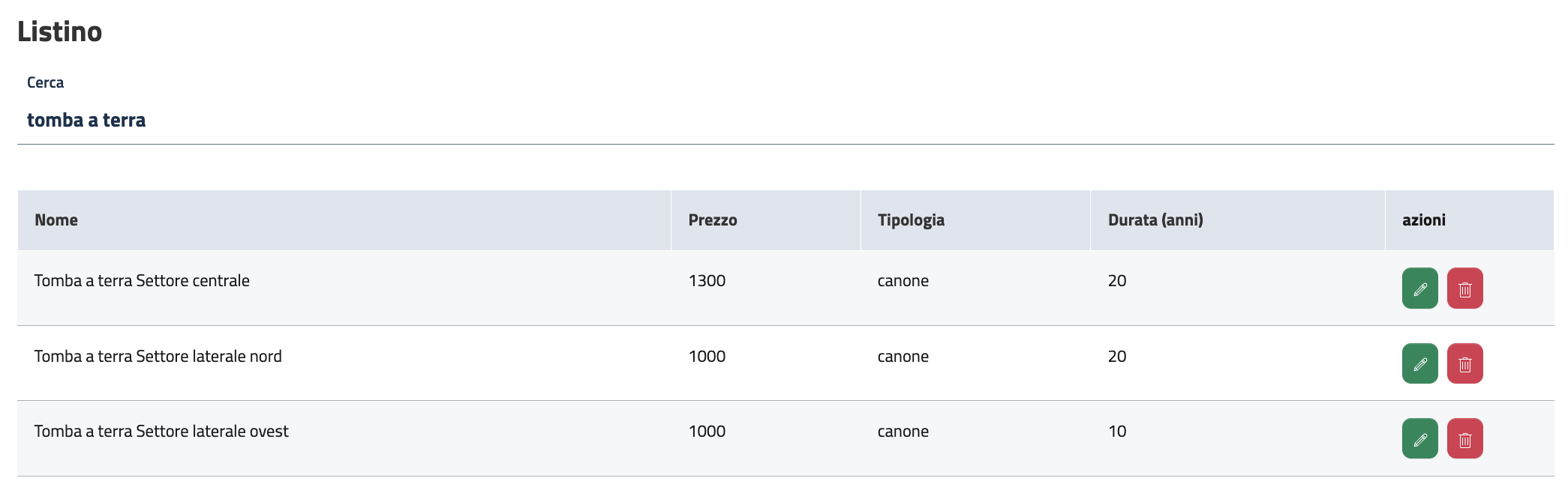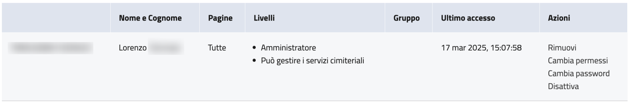 Sempre a partire dalla Homepage è possibile intervenire sui cimiteri già creati attraverso la sezione Azioni.