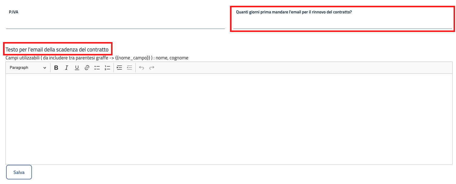 Sarà inoltre possibile impostare un’email standard per avvisare i contraenti della scadenza imminente del contratto. Sarà possibile impostare anche quanti giorni prima inviare la mail automatica.